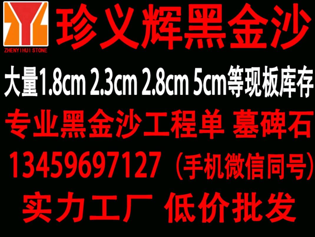 珍義輝黑金沙吳總13459697127實力石材工廠主要加工:黑金沙、黑金砂、印度黑金沙、印度黑石、印度黑色板、印度天然黑金沙、印度黑石材、印度黑色石材、印度黑花崗巖、印度黑板、黑金沙石材、黑金沙花崗巖、新礦黑金砂、國產(chǎn)黑金沙、新黑金沙石材等墓碑料、路沿石、工程單(荔枝面、磨光面、火燒面等)、市場板、專業(yè)園林市政異形荒料墓碑石廠家,實力工廠、低價批發(fā)、合作共贏、誠信服務(wù)!
