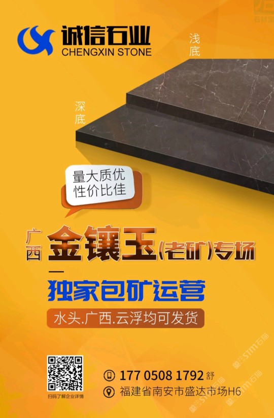 聚賢石業(yè)位于東升石材超市三號(hào)門(mén)第三個(gè)行吊,主營(yíng)廣西老礦金鑲玉礦山總包,水頭總代理