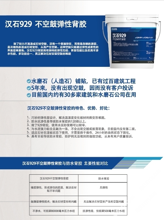 小楊防水背膠:漢石929不空鼓彈性背膠