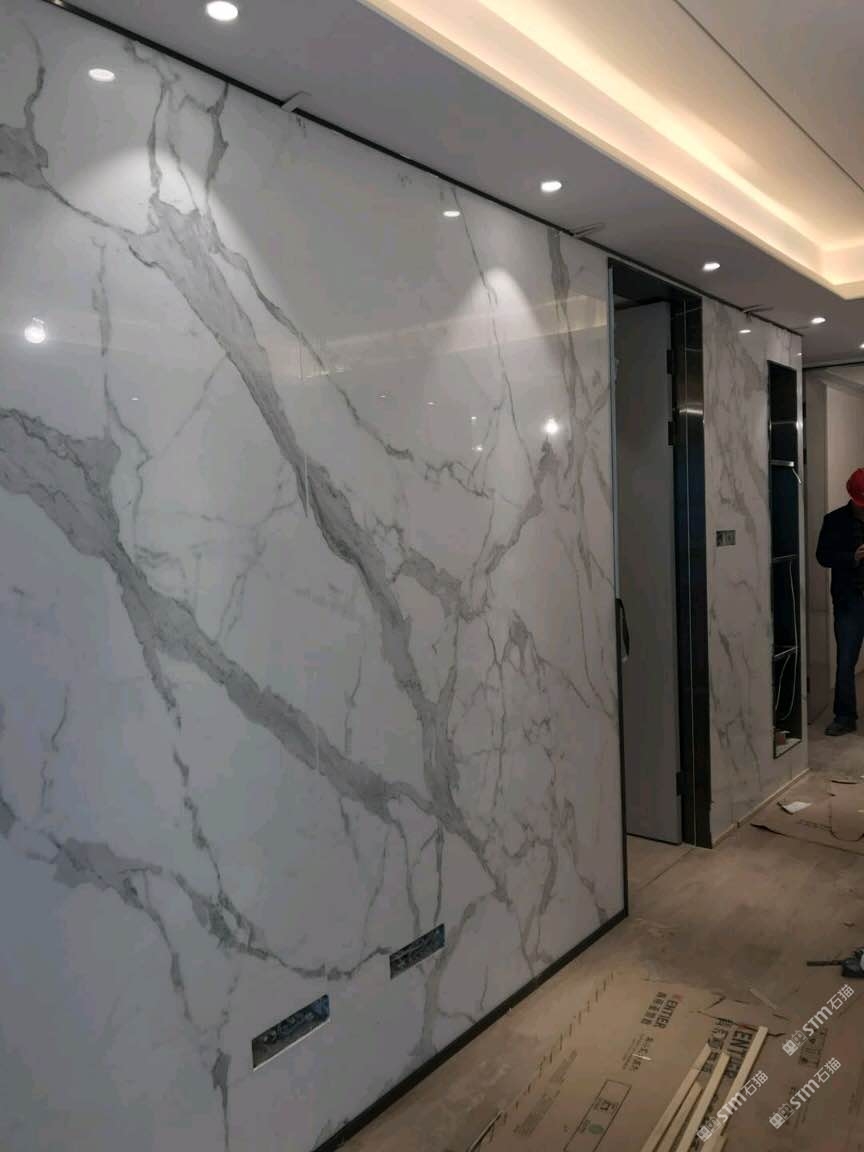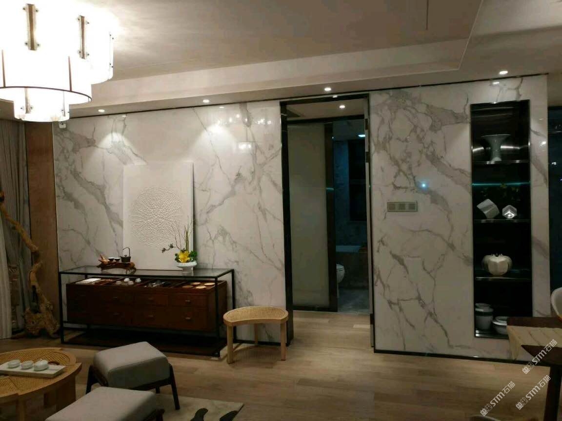 雪花白巖板背景墻案例
