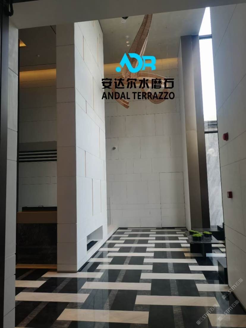 發(fā)布信息: 【安達爾.水磨石】 ?案例分享 ?材料:條紋白洞 墻身 ??廣州龍湖售樓部popo