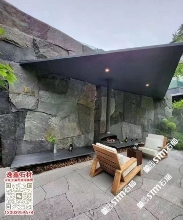 柬埔寨芝麻黑自然面背景墻劈裂石文化石新老礦芝麻黑石