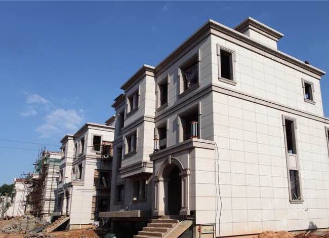 這些住宅是采用蝦紅荔枝面為外墻干掛