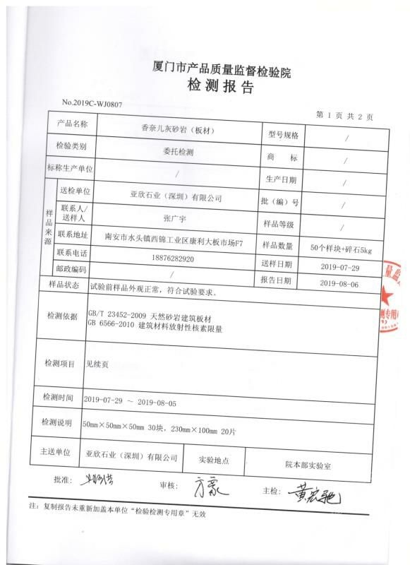 亞欣石材香奈兒灰檢測報告