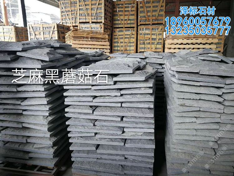 g654老礦芝麻黑石材蘑菇石自然面文化石干掛背景墻