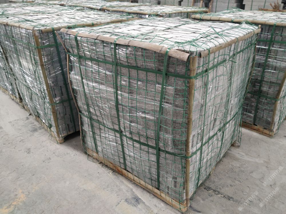 芝麻灰小方塊馬蹄石自然面S型小路鋪裝10cm收邊石