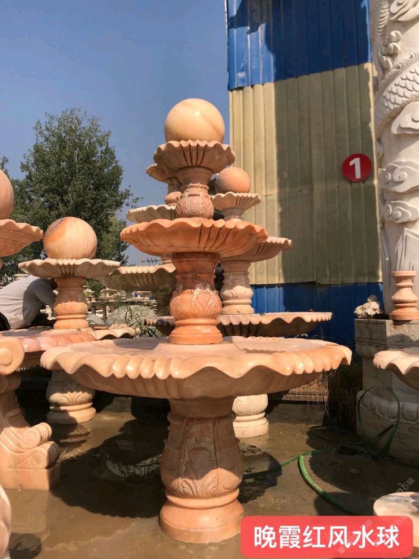 曲陽雕塑廠家制作晚霞紅噴泉 庭院公園風(fēng)水球擺件