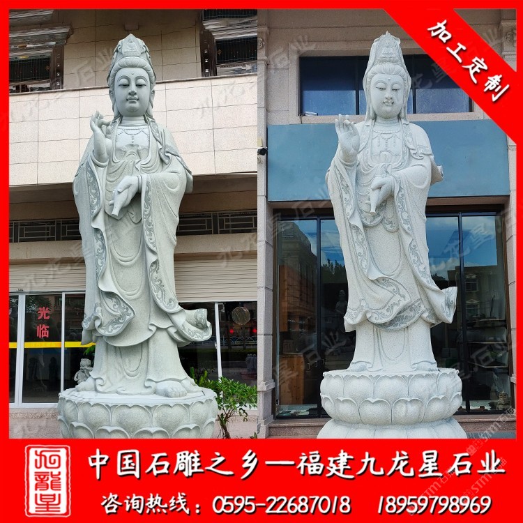 發(fā)布信息: 九龍星石業(yè)是石雕佛像廠家,常年批發(fā)石雕觀音菩薩等佛像,咨詢電話:18959798969 在寺廟,各種石雕佛像是很常見的,小到家家戶戶都會(huì)在家中供奉著石雕小型觀音佛像,大到各種寺廟廣場(chǎng)景區(qū)的大型石雕觀音菩薩,我們所見到的石雕觀音還都有不同的樣子,其實(shí)石雕觀音菩薩的常用形態(tài)一般分為站姿的石雕觀音,坐姿的石雕觀音和臥姿的石雕觀音,這三種觀音所展現(xiàn)的姿態(tài)不同,寓意自然也是不同的,但是是適合在不同的地方進(jìn)行擺放和供人膜拜。