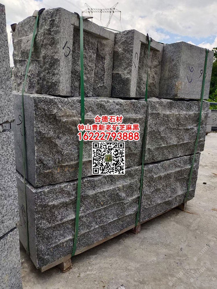 鐘山青自然面蘑菇石外墻干掛新礦芝麻黑石材文化石墻磚