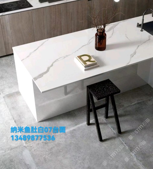 工程圓柱純白魚肚白微晶石臺面13489877536