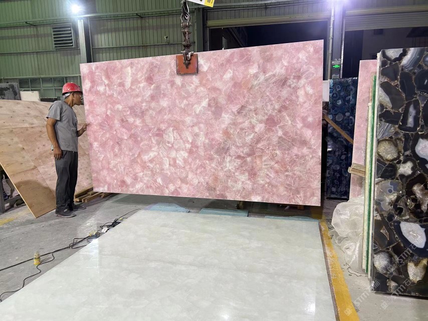 半寶石板材定制,粉紅水晶寶石板