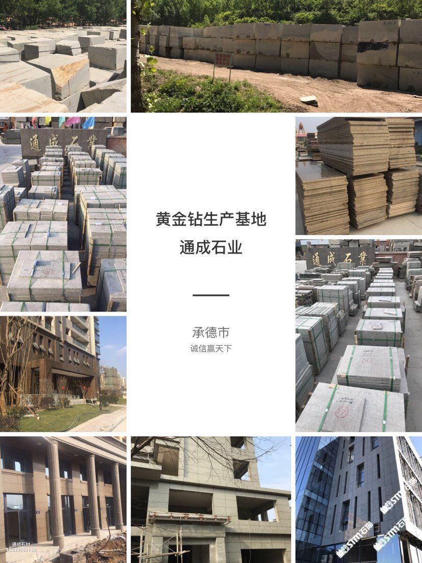 發(fā)布信息: 我公司以礦山開(kāi)采石材加工為一體主要經(jīng)營(yíng):黃金鉆、電解黃金鉆、寶金石、皇室珍珠、沙漠金棕、承德綠、沙漠綠洲、藍(lán)豹、皇室啡、燕山綠、荔枝面、火燒板、光板、機(jī)切面、蘑菇石、盲道石 異型加工等二十多種石材產(chǎn)品。承接園林、廣場(chǎng)、外墻干掛等各種工程應(yīng)用板材。我公司奉行:以質(zhì)量求生存、以信譽(yù)求發(fā)展的原則,誠(chéng)石守信、主客雙贏(yíng)、同等的質(zhì)量比價(jià)格、同等的價(jià)格比質(zhì)量的經(jīng)營(yíng)理念。誠(chéng)迎各界商客朋友來(lái)我公司參觀(guān)指導(dǎo)洽談業(yè)務(wù)!訂購(gòu)熱線(xiàn):? 13832461168 13653249345(微信同號(hào))