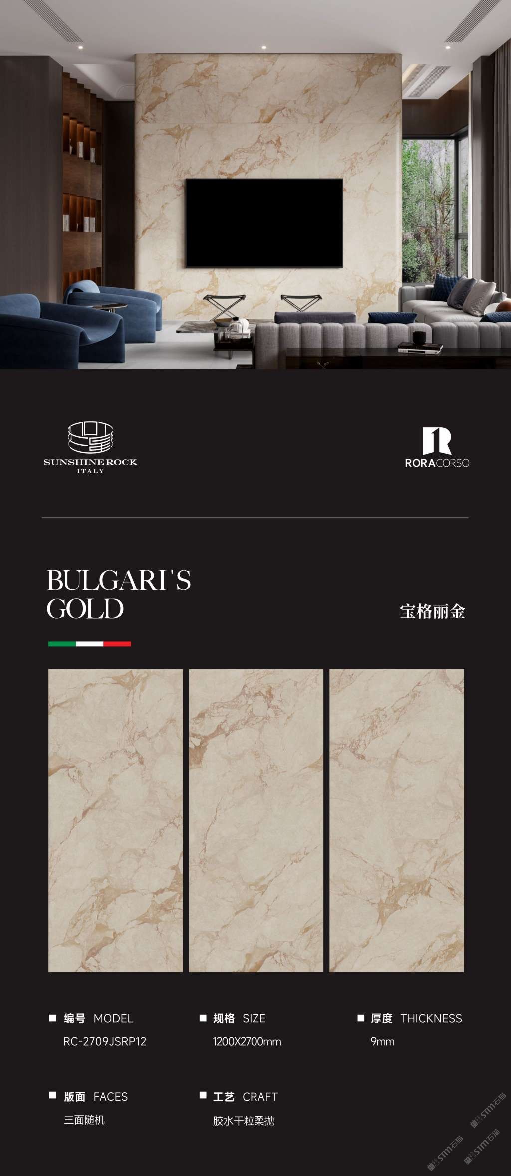 1200x2700x9寶格麗金巖板源頭廠家外貿(mào)出口