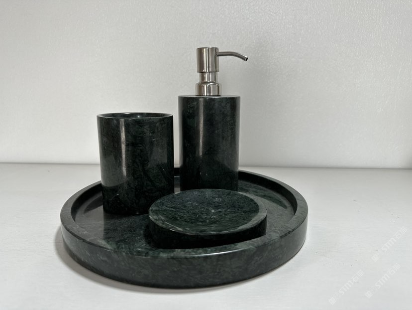 大花綠石材衛(wèi)浴四件套 石材香皂盒淋浴擺件托盤