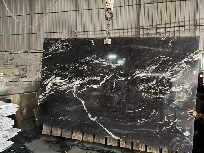春偉石業(yè):宇宙黑繩鋸大板/云黑石/安哥拉黑沙鋸大板