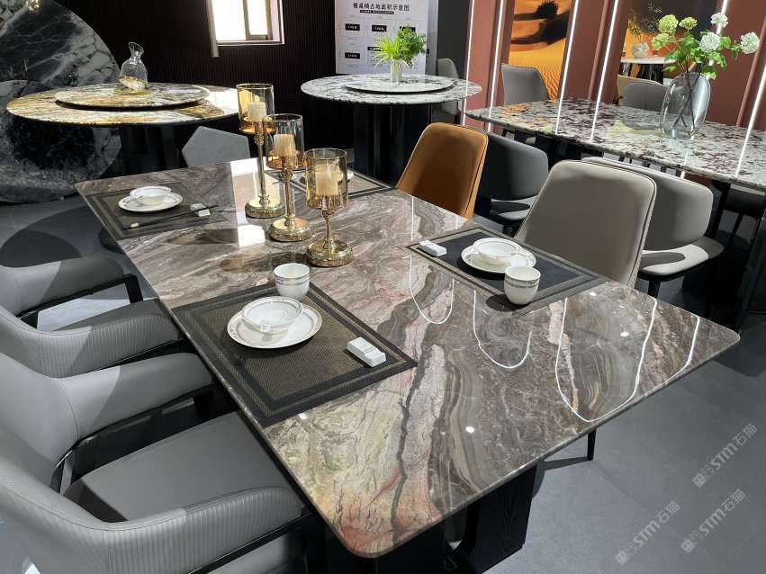 實(shí)木結(jié)合五金奢石餐桌:香格里拉#水頭奢石家居中心