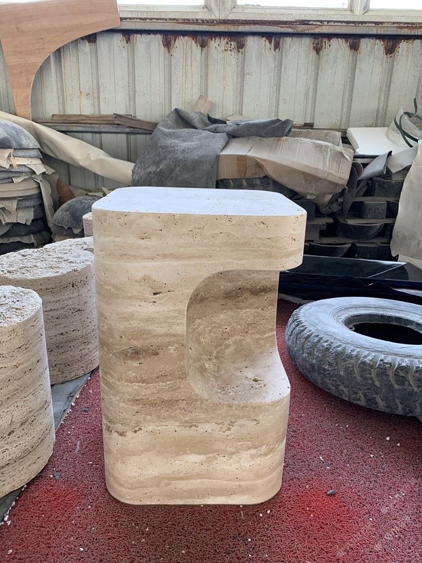 米白洞桌子 創(chuàng)意造型石材家具石桌邊幾茶幾咖啡桌