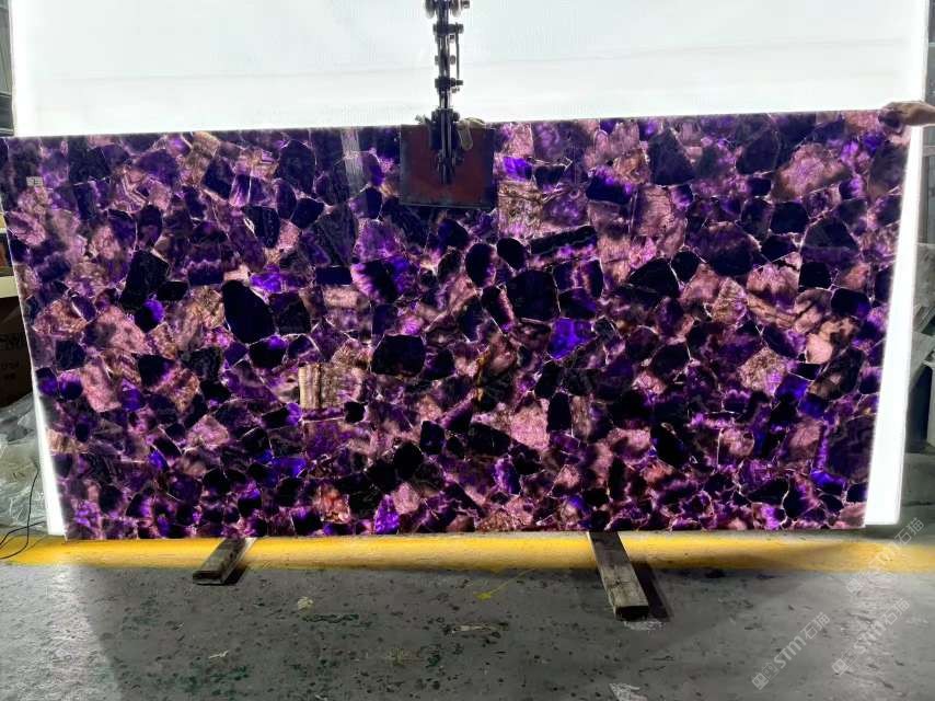 超美紫水晶透光寶石板,紫色發(fā)光石材,奢石
