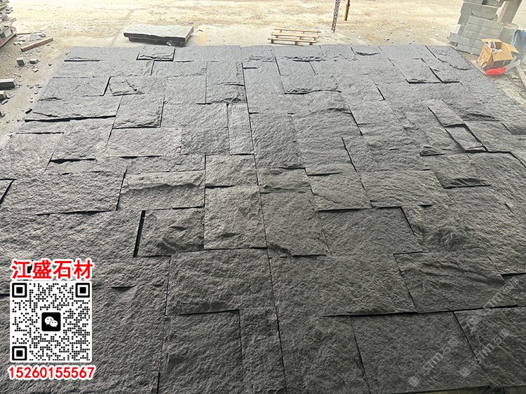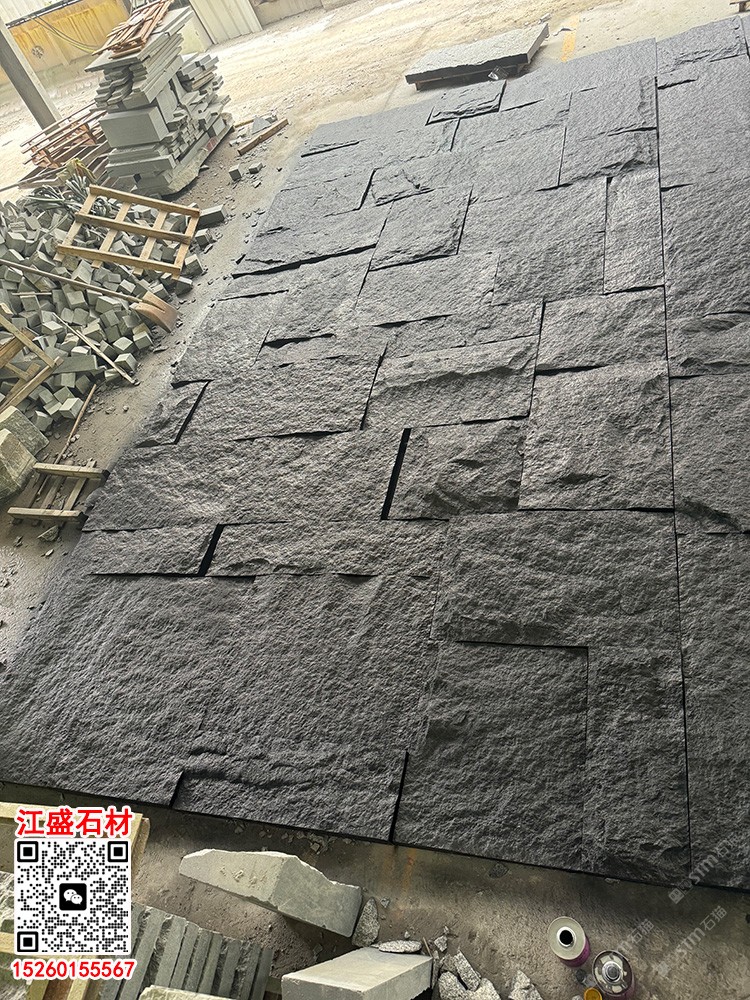 自然面芝麻黑654石材背景墻蘑菇石文化石凹凸外墻磚
