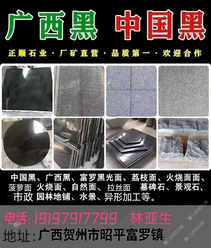 發(fā)布信息: 廣西昭平富羅正順石業(yè),主營廣西中國黑(富羅黑),光面、火燒面、荔枝面、自然面、墓碑石、水景、園林景觀等工程板,本公司廠礦一體,石材生產(chǎn)加工銷售、工程設計施工安裝,??18750322225張 19197917799林