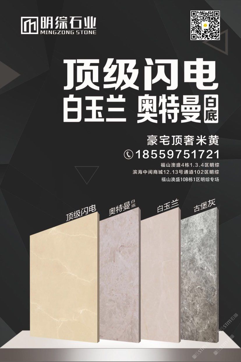 發(fā)布信息: 【明綜石業(yè)】 匠造之心 明之造,綜以恒 品種 專場經(jīng)營 量大價(jià)優(yōu) *閃電·新莎安娜*奧特曼*白玉蘭 ??:18559751721 銷售地點(diǎn): 水頭澳盛市場4棟1.3.4區(qū)明綜/10棟1區(qū)明綜專場/水頭中閩石材商城102區(qū)明綜