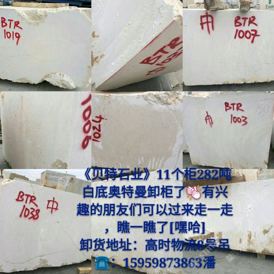 發(fā)布信息: 新到白底奧特曼荒料,卸于高時物流8號吊,歡迎各位領導前來圍觀選購!?:15959873863潘