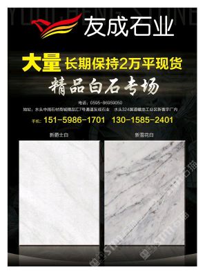 發(fā)布信息: 新爵士白,新雪花白誰用誰知道,無裂,不崩邊,關(guān)鍵價(jià)格好15159861701