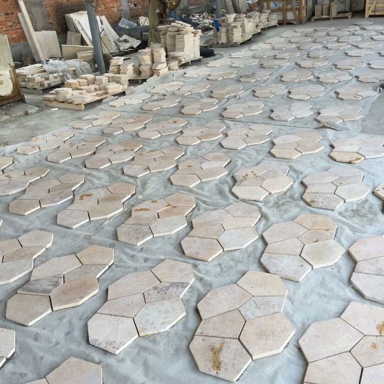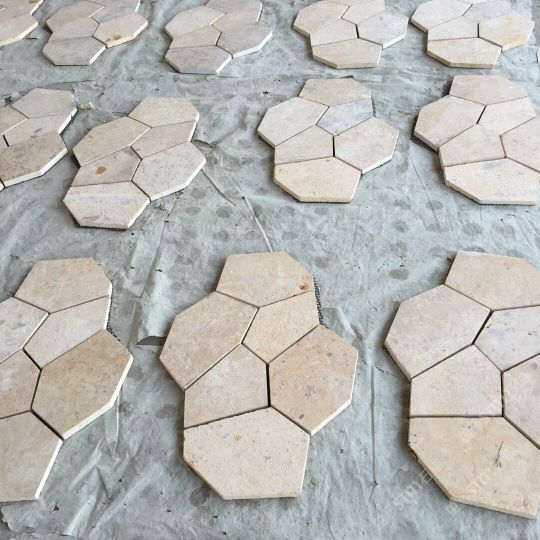 六邊形米黃地鋪石材,冰裂紋萊姆石地鋪