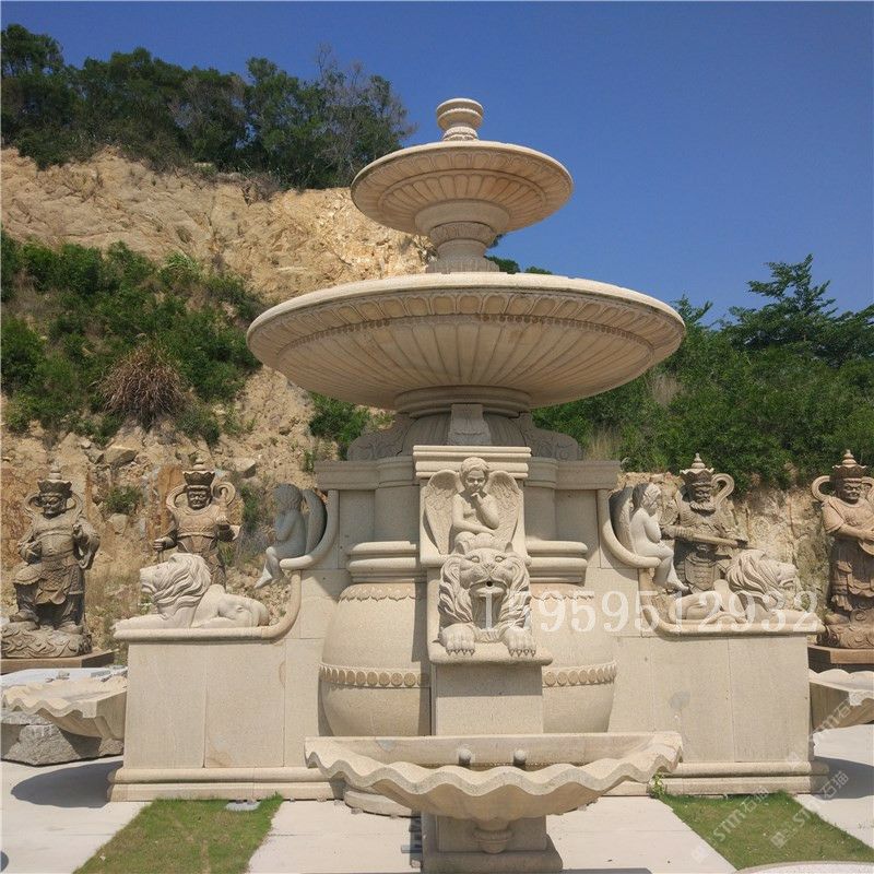 大型歐式石雕噴泉 黃銹石花崗巖石頭噴泉別墅小區(qū)裝飾