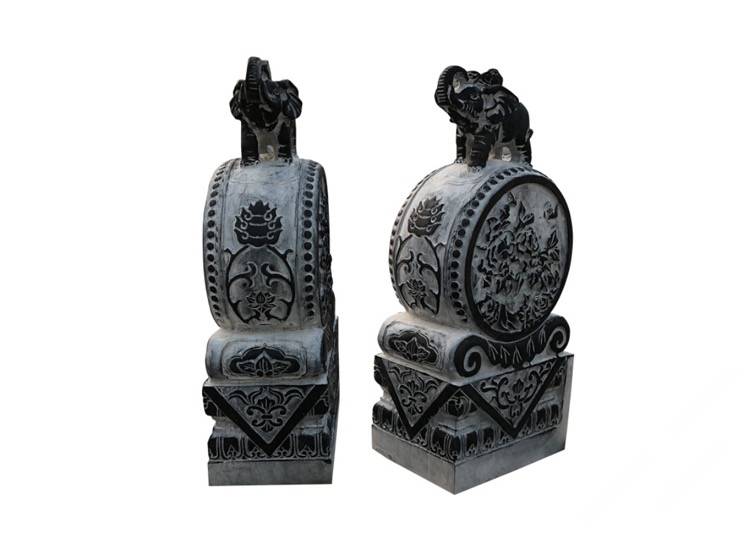 描述:抱鼓石是漢族傳統(tǒng)民居,特別是四合院的大門底部位于宅門入口、形似圓鼓的兩塊人工雕琢的石制構(gòu)件,屬于門枕石的一種,因?yàn)樗幸粋€(gè)猶如抱鼓的形態(tài)承托于石座之上,故此得名。抱鼓石是禮制建筑等級的符號象征,也是"非貴即富"的門第符號,抱鼓石絕不脫離它主人背后的政治、經(jīng)濟(jì)基礎(chǔ)而獨(dú)立存在。抱鼓石漢族民間稱謂較多,如:石鼓、門鼓、圓鼓子、石鏍鼓、石鏡等等。抱鼓石與門簪因?yàn)樵谡T門面上下遙相呼應(yīng),在漢族民間有所謂的"門當(dāng)戶對"之說。
